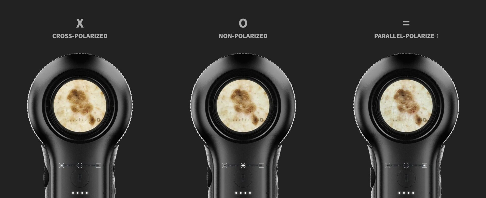 Díky prvnímu systému variabilní polarizace v hybridním dermatoskopu (patentovaná technologie) lze přepínat mezi polarizovaným a nepolarizovaným režimem. Umožňuje okamžitě přepnout pohled mezi povrchovými a hlubšími strukturami bez nutnosti měnit režim.